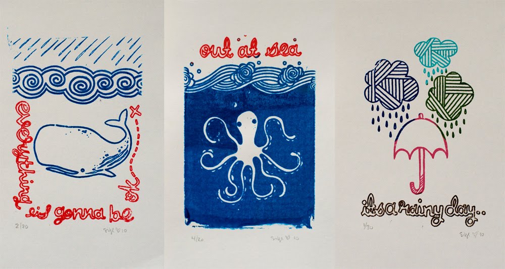 I've been busy painting for work, and for fun, and I brought some of the gocco screen prints back for fall, they are up for sale in my Etsy shop <3